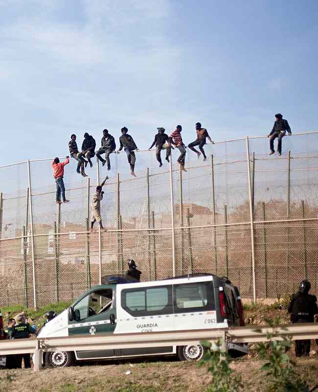 Global gesehen nimmt die Armut zu: Ein Prozent der Bevölkerung besitzt fast die Hälfte des Weltvermögens (12➘). Die EU rüstet die Außengrenzen auf und begeht Menschenrechtsverletzungen wie hier am Grenzzaun der spanischen Enklave Melilla (Video: 13➘).