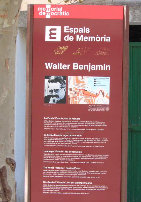Im franquistischen Spanien wollte niemand an Walter Benjamin erinnern, seine sterblichen Überreste wurden ins Massengrab geworfen. 1979 brachte die demokratische Regierung eine Gedenktafel für den jüdischen deutschen Philosophen an. Heute steht dort, wo früher das Massengrab war, ein Monolith für Benjamin.