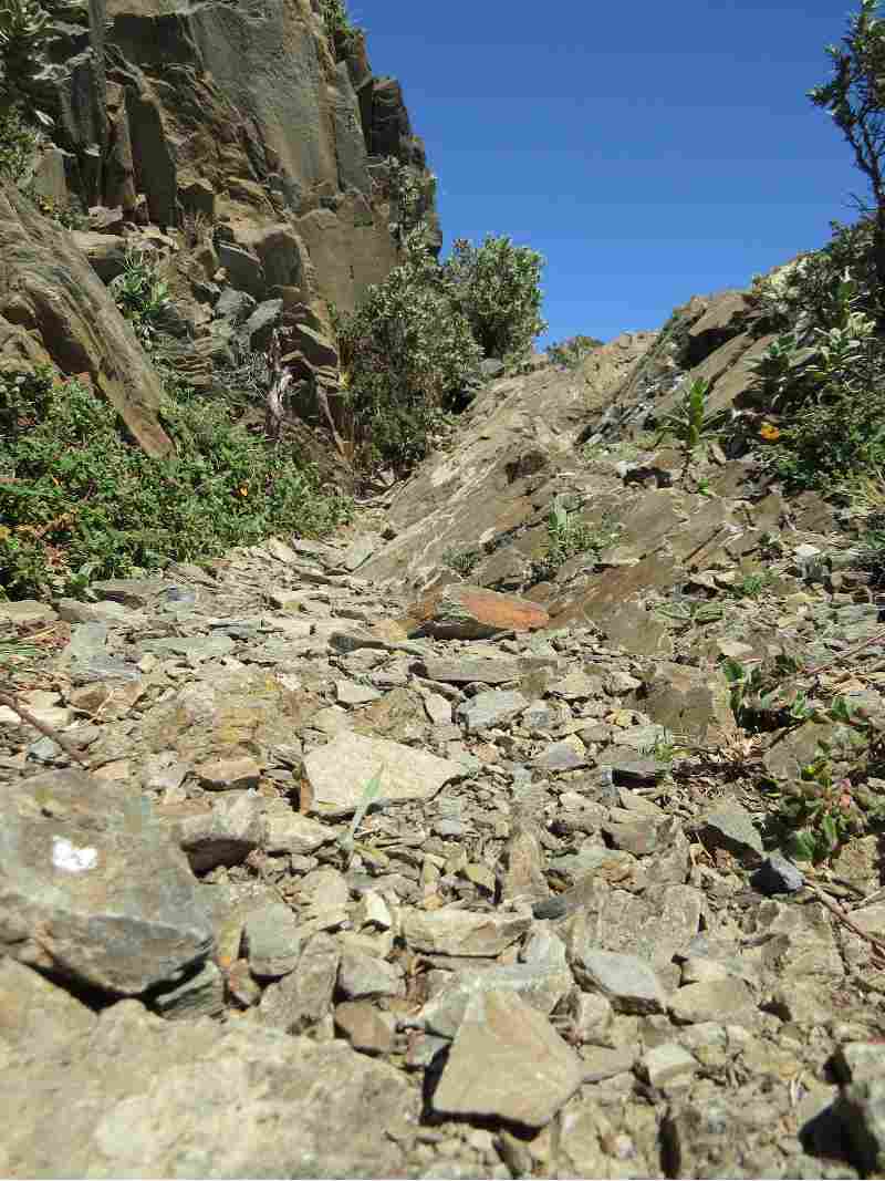 The goats in front of us stumbled, the slate rocks glistened, they were as smooth as glass, and we had to walk on the edge of an abyss.